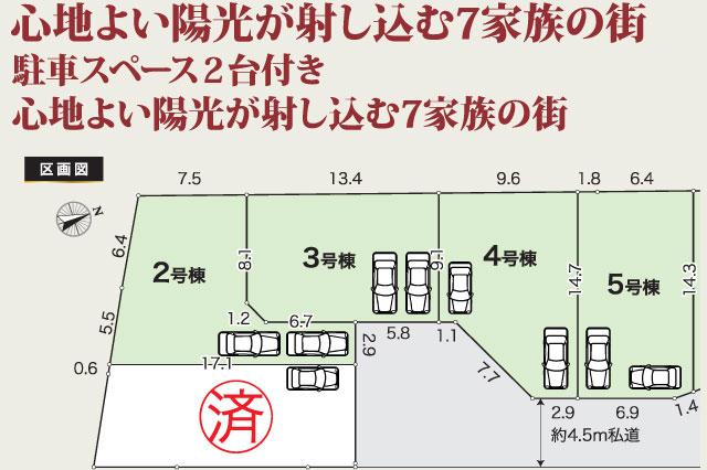 | 補 足 | 仲介手数料無料、フラット35S利用可能、ZEH水準仕様、JHS地盤保証システム(10年保証)、住宅瑕疵担保責任保険、Low-E複層ガラス(遮熱タイプ)、給湯器エコジョーズ、システムキッチン(オールラウンド収納・浄水器内蔵型ハンドシャワー)、ユニットバス(自動湯はり・換気乾燥機・ワンタッチシャワーヘッド)、トイレ2ヶ所(ウォシュレット・W節水)、キッチン床下収納、居室・収納・廊下部分フローリング、建物内各居室BS対応TV配線、24時間換気システム、防湿コンクリートベタ基礎・基礎パッキン使用、シロアリ駆除(保証書付)、設備:都市ガス、公営水道、浄化槽 | ||