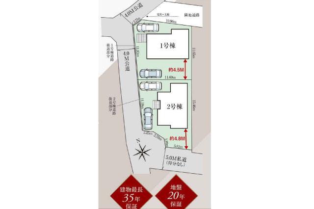| 補 足 | 仲介手数料無料、フラット35S利用可能、ZEH水準仕様、JHS地盤保証システム(10年保証)、住宅瑕疵担保責任保険、Low-E複層ガラス(遮熱タイプ)、給湯器エコジョーズ、システムキッチン(オールラウンド収納・浄水器内蔵型ハンドシャワー)、ユニットバス(自動湯はり・換気乾燥機・ワンタッチシャワーヘッド)、トイレ2ヶ所(ウォシュレット・W節水)、キッチン床下収納、居室・収納・廊下部分フローリング、建物内各居室BS対応TV配線、24時間換気システム、防湿コンクリートベタ基礎・基礎パッキン使用、シロアリ駆除(保証書付)、設備:都市ガス、公営水道、浄化槽 | ||
