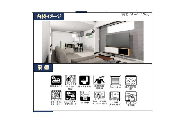 | 補 足 | 仲介手数料無料、フラット35S適用住宅、ペアガラスサッシ、シャンプードレッサー、テレビモニター付インターホン、システムキッチン(浄水器内蔵型ハンドシャワー)、1坪タイプユニットバス(浴室換気乾燥機付き)、シャワートイレ(暖房便座)、24時間換気システム、住宅瑕疵担保責任保険(保険期間10年)、設備:都市ガス、公営水道、浄化槽 | ||