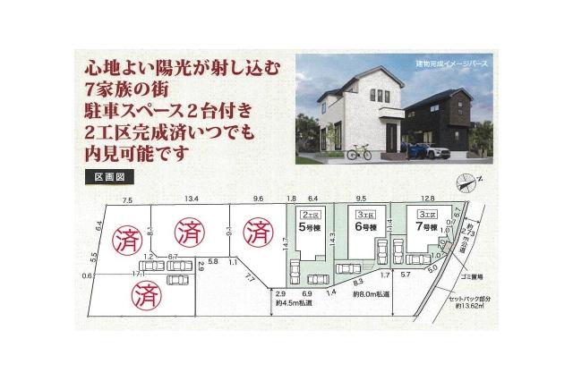 | 補 足 | 仲介手数料無料、フラット35S利用可能、ZEH水準仕様、JHS地盤保証システム(10年保証)、住宅瑕疵担保責任保険、Low-E複層ガラス(遮熱タイプ)、給湯器エコジョーズ、システムキッチン(オールラウンド収納・浄水器内蔵型ハンドシャワー)、ユニットバス(自動湯はり・換気乾燥機・ワンタッチシャワーヘッド)、トイレ2ヶ所(ウォシュレット・W節水)、キッチン床下収納、居室・収納・廊下部分フローリング、建物内各居室BS対応TV配線、24時間換気システム、防湿コンクリートベタ基礎・基礎パッキン使用、シロアリ駆除(保証書付)、設備:都市ガス、公営水道、浄化槽 | ||