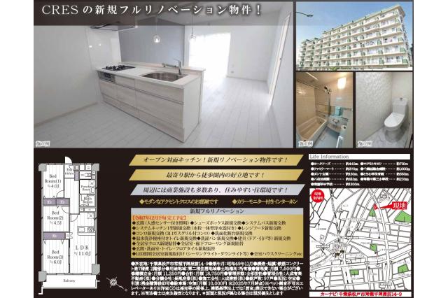 | 補 足 | 仲介手数料無料、大規模マンション、オープン対面キッチン、カラーモニター付きインターホン、リノベーションマンション【リフォーム内容(2025/12完了予定):システムキッチン交換 ユニットバス交換 洗面化粧台交換 トイレ交換 クロス全室貼替 床材貼替 ハウスクリーニング】 | ||