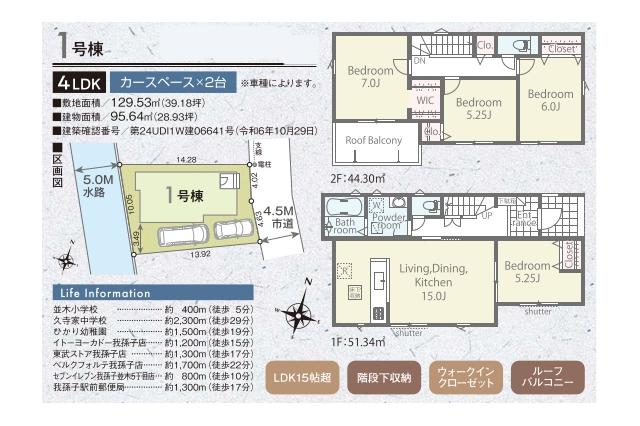 | 築年月 | R07/08 | 建物面積 | 95.64m² | 間取り | 4LDK | 構造/階建 | 木造/2階建 |