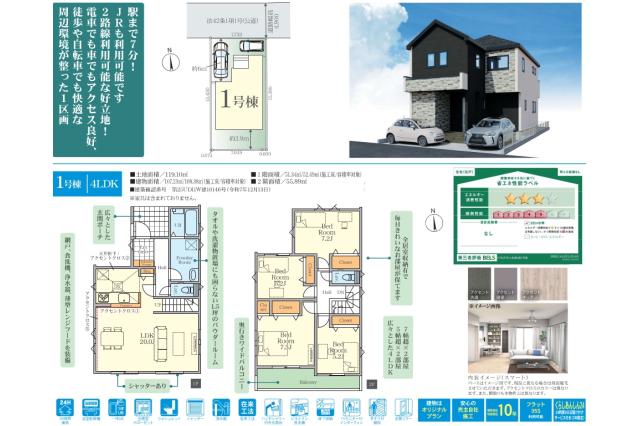 | 築年月 | R08/07 | 建物面積 | 107.23m² | 間取り | 4LDK | 構造/階建 | 木造/2階建 |