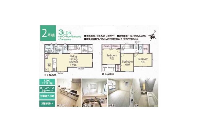 | 築年月 | R08/01 | 建物面積 | 92.73m² | 間取り | 3LDK | 構造/階建 | 木造/2階建 |