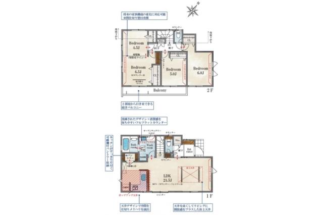 | 補 足 | 仲介手数料無料、10年間住宅性能保証、住宅瑕疵担保責任保険、フラット35適用住宅、耐震等級3(最高等級)、防犯断熱仕様玄関ドア、全居室ペアガラス、全サッシ網戸付、人口大理石カウンターシステムキッチン(シャワー蛇口・浄水器蛇口)、シャンプードレッサー付洗面化粧台、浴室乾燥機、テレビモニター付インターホン、設備:都市ガス、公営水道、本下水 | ||